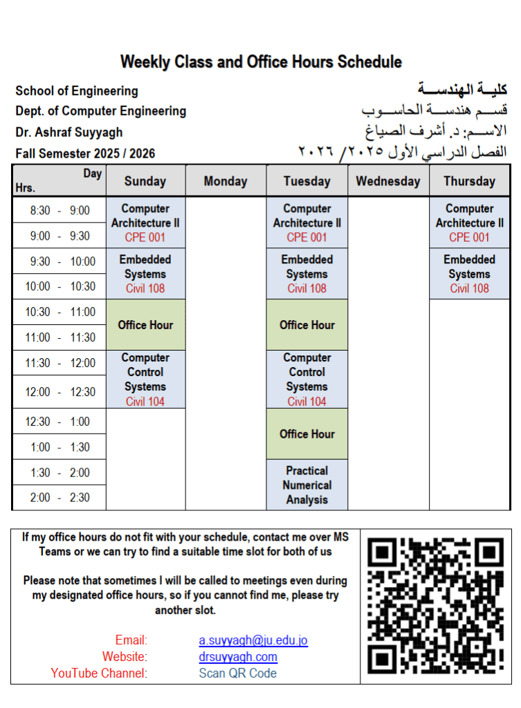 Kindly note that my office is in the School of Enginerring, Computer Engineering Department, 4th floor (Go up the main stairs, then to go to the left)